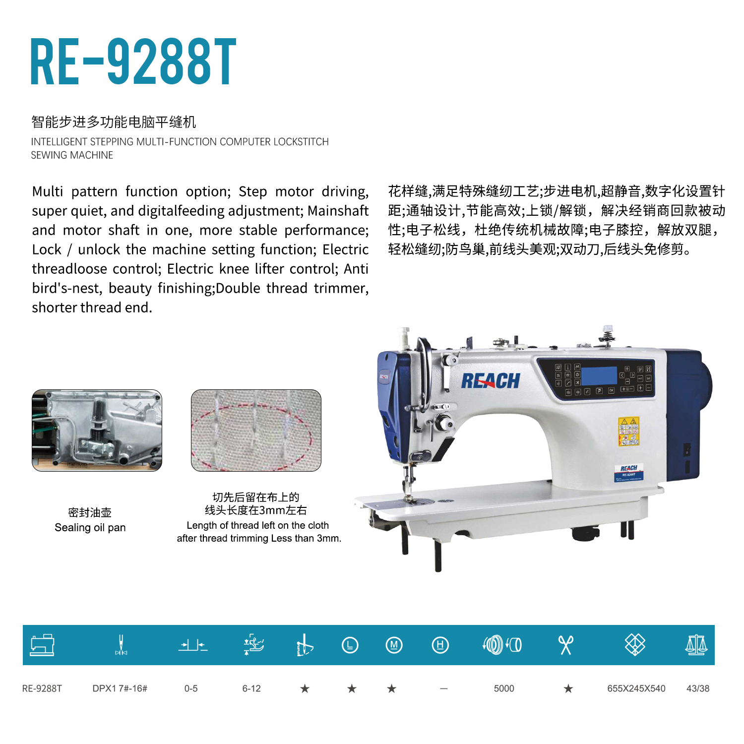 RE-9288T Step computer flat sewing machine(步进电脑平缝机)