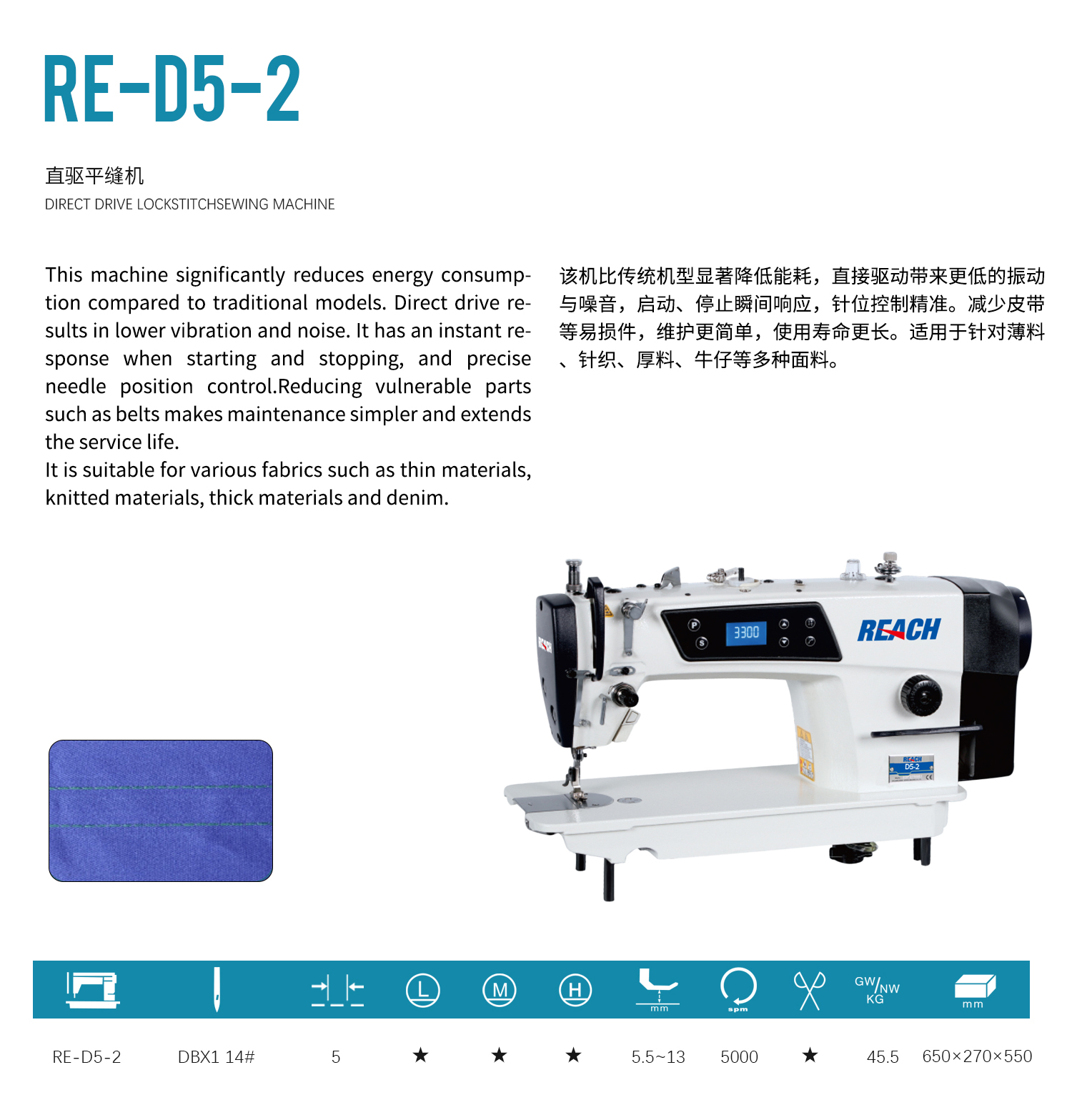 RE-D5-2 Direct Drive Lock Stitch Sewing Machine 直驱平缝机